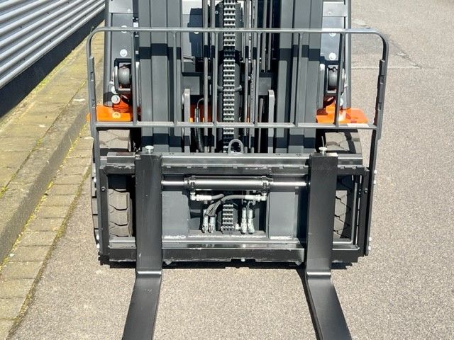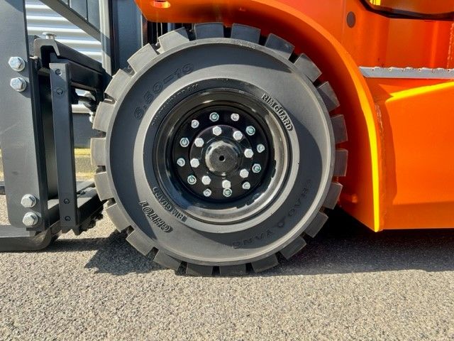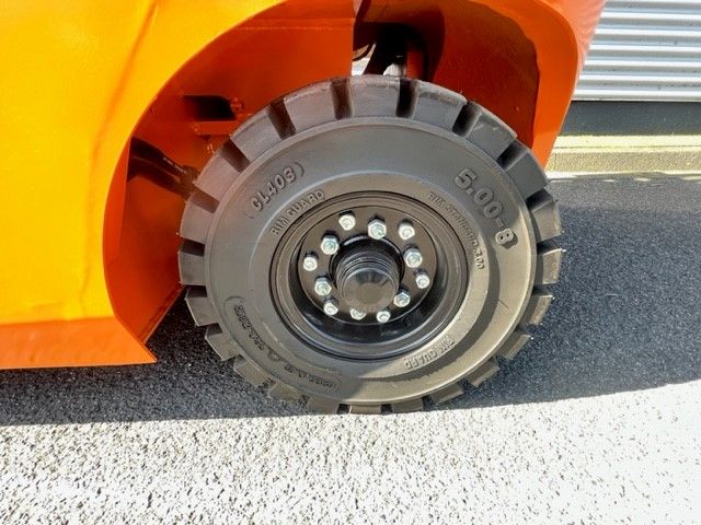 Mast: Triplex Hubhöhe: 4500 mm Bauhöhe: 2160 mm Freihub: 1210 mm Gabellänge: 1200 mm Gabelbreite: 100 mm Gabeldicke: 40 mm Reifen vorne: Superelastik Reifen vorne Anzahl: 2 Reifen vorne Größe: 6.50-10 Reifen hinten: Superelastik Reifen hinten Anzahl: 2 Reifen hinten Größe: 5.00-8 |